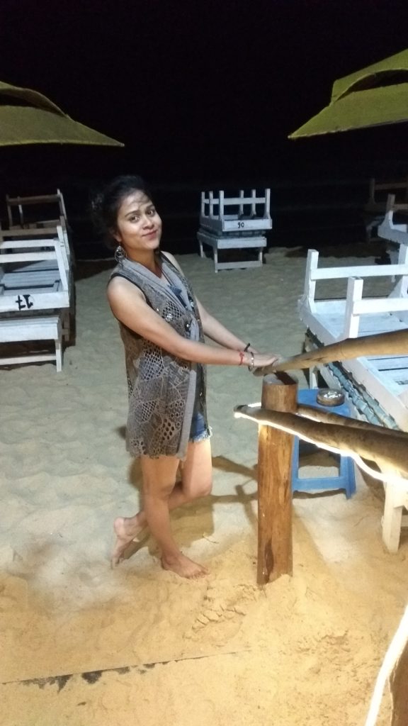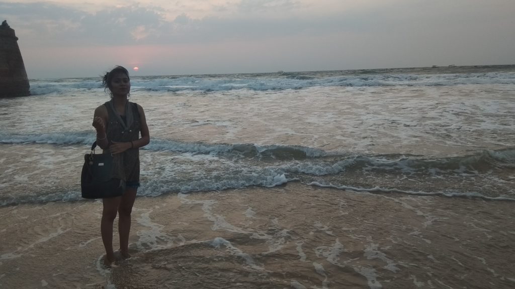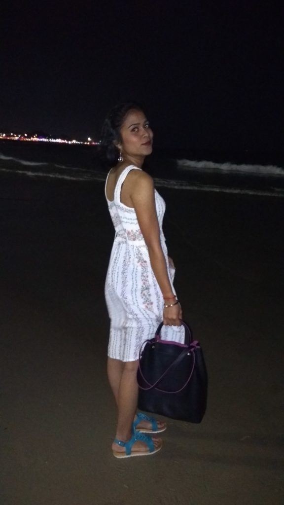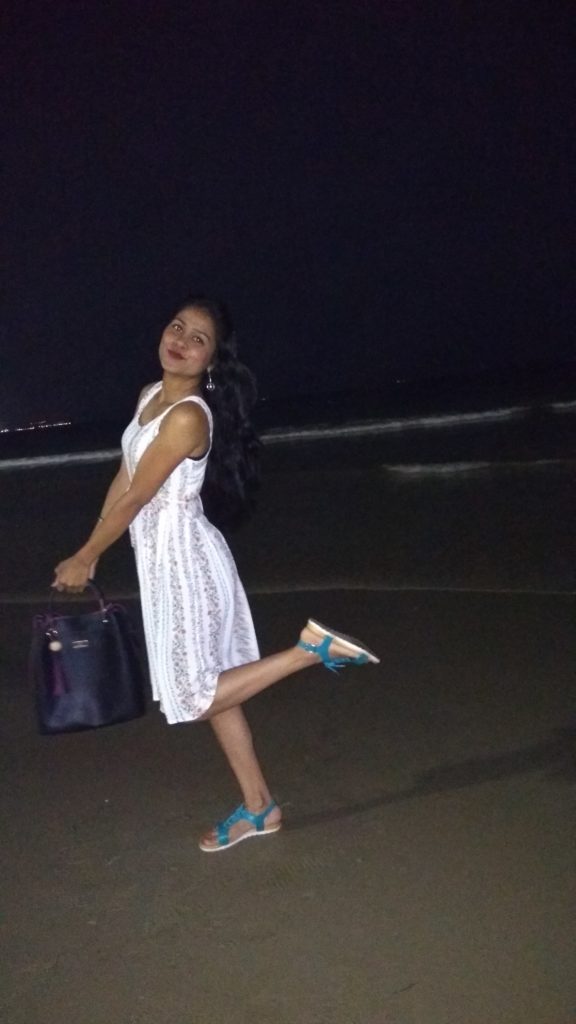 वहां पहुंचते ही ऐसा लगा कि मैं एक अलग ही दुनिया में आ गई हूं चारों तरफ लाइट जल रही थी. सामने नीला समंदर और साथ में Romantic गाने भी बज रहे थे ऐसा लग रहा था जैसे कि मैं किसी दुसरी दुनिया में आ गई हूं. और मन कर रहा था कि यहीं रहूं और इस मंजर को अपनी आंखों में कैद कर लूं. इसके बाद वहां से हम लोग बाजार की तरफ निकले कहीं काजू तो कहीं बैग की दुकाने, कहीं रैस्टोरैंट तो कहीं कल्ब, कहीं पिज़्ज़ा तो कही बीयर बार दिखाई पड़ रहे थे. फिर हम एक रेस्टोरैंट में जाते हैं और वहां पर हम चिकन कबाब खाते हैं, और फिर घूमते-घूमते पैदल पैदल अपने होटल की तरफ़ निकलने लगते हैं आगे जाके हमें एक छोटी सी दुकान दिखती है जहां पर मैंगी और ब्रेड आमलेट बन रहा था मन किया की खा लूं. फिर मैने ब्रेड आमलेट खाया और उसके बाद हम होटल की तरफ निकलते है रात काफी हो चुकी थी तो अब बस तो मिलने से रही तो जैसे- तैसे हम लोग होटल तक पहुंचते है.
