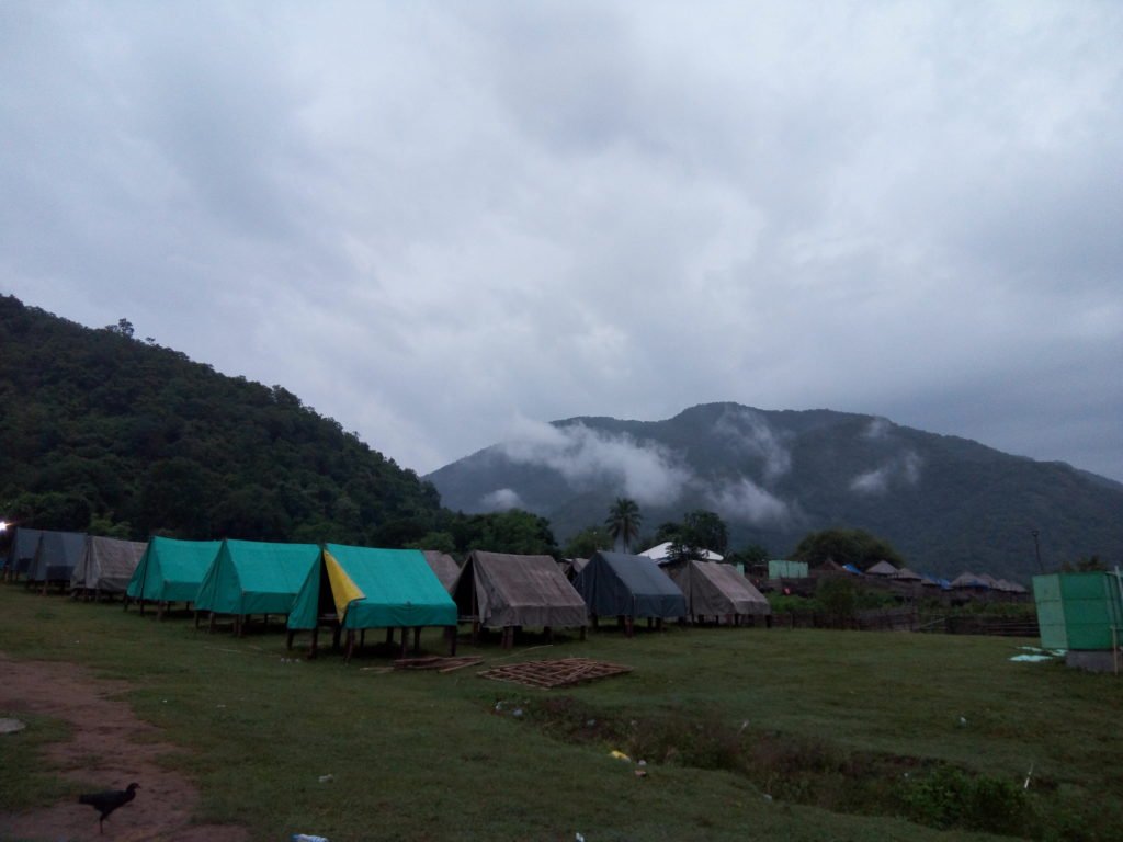 सभी लोगों को खाने के लिए बुला लिया गया. वहीं, पर एक झोपड़ी बनाया गया था. जिसके ऊपर में केवल लकड़ी का छत बनाया गया था. जबकि, चारों ओर से खुला हुआ था. बांस से चारों कोनों पर झोपड़ी को सहारा दिया गया था. यहां सभी को वेजिटेरियन और नॉनवेजिटेरियन दोनों का ख्याल रखा गया था. खैर, हम तो बैंबू चिकेन के बाद भी दोबारा मछली पर टूट पड़े. गोदावरी नदी से निकाली गई ताजी मछलियों को बनाया गया था. भई, गजब का स्वाद था. मछली-चावल के अलावा दूसरी ओर हमने ध्यान ही नहीं दिया. हां, कुछ चीकेन के पीस का भी टेस्ट किया गया. भोजन करने के बाद हमलोग अपने टेंट में वापस लौट आए. थकान होने की वजह से नींद भी आ रही थी. मोबाइल तो चल नहीं रहा था. फोटो खींचने के लिए बैट्री भी बचाकर रखना था. इस वजह से कुछ देर तक बाहर टहलने के लिए निकल पड़े. टेंट के बाहर दोस्तों की टोली जमकर मस्ती कर रही थी. एक ओर मदिरापान का लुत्फ उठाया जा रहा था. तो दूसरी टोली धूएं उड़ा रही थी. हमें भी न्योता मिला. लेकिन, हमने नो थैंक्स कह दिया. इसके बाद वापस टेंट में आकर बिस्तर पर लेट गए. दरवाजे के तरफ से टेंट को हटा दिया गया. अब आसमान में साफ तारे दिख रहे थे. अंधेरी रात में तारों का टिमटिमाना क्या पता क्यों इतना अच्छा लग रहा था. दिल और दिमाग में कई ख्याल आ रहे थे. शहर का भागदौड़. ट्रेन की तरह भागते लोग. एक-दूसरे को पीछे छोड़ कुछ पा लेने की होड़ में लगी एक बड़ी आबादी. यहां सबकुछ अलग था. रात 9 बजे के करीब गांव में लोग सो चुके थे. चारों ओर सन्नाटा था. जंगल से चलनेवाली हवा और कुछ जानवरों की आवाज केवल महसूस कर रहे थे. इस तरह से पता नहीं कब नींद आ गई.