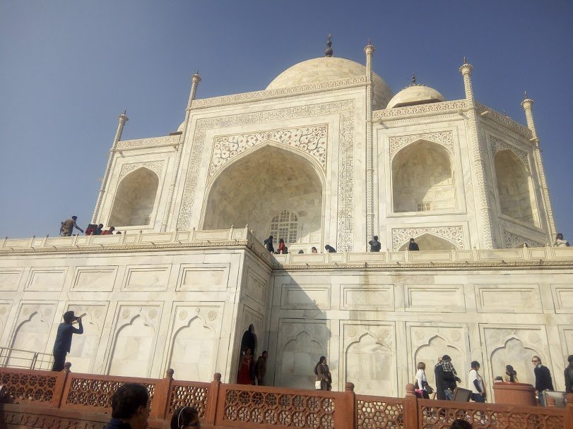 अब सीधा टारगेट ताजमहल था. धन्नो की रफ्तार तेज कर दी. जैसे ही साइनबोर्ड पर ताजमहल 50 किमी दिखा तो राहत की सांस ली. ठंड अभी भी हिम्मत को हराने की भरपूर कोशिश कर रही थी. हवा चिटर और स्वेटर से अंदर घुसकर सीधे छाती पर हमला बोल रही थी. कुछ ही दूर आगे बढ़ने पर हल्की सी धूप आई. फिर से बाइक रोक दी. कुछ देर तक तो भगवान भास्कर से राहत मिली. लेकिन, कुहासा कहां पीछा छोड़नेवाला था. आंखों के आगे फिर से धूंध छाने लगा. और हमने स्लेटर पर दबाव बढ़ा दिया. एक्सप्रेसवे से आगरा शहर की ओर मुड़ते ही माहौल बदला हुआ दिख रहा था. 12 बजे के करीब लोग अलाव के सामने बैठे थे. हल्की धूप भी चढ़ गई थी. एक दुकान के आगे बाइक लगाई. गर्म-गर्म कचौड़ी और लिट्टी देख मन ललच गया. तुरंत ऑर्डर दिया. भाई कुछ खिला दो. अब खिलाने से पहले लोग सवाल करने लगे. कहां से आ रहे हो. कहां जाना है. इतनी ठंड में नहीं निकलना था. कैसे ग्वालियर तक आज जाओगे. इन सवालों का जवाब देने के दौरान लग रहा था कि ठंड से शरीर सिकुड़ सा गया है. बिना देर किए मैं कोयले के चूल्हे के पास पहुंच गया. करीब 15 से 20 मिनट तक उसकी आग से ठंड को मात देता रहा. फिर गर्म-गर्म जलेबी और कचौड़ी से राहत मिली. लोगों से विदा लिया और ताजमहल के दीदार के लिए निकल पड़ा. उत्साह चरम पर था. पहली बार ताजमहल को सामने से देख रहा था. अब तक फिल्मों और किताबों में पढ़ा था. मोहब्बत की इस निशानी को देखने की खुशी गजब की थी. इसकी एक और वजह थी. मैंने माउंटेनमैन दशरथ मांझी की उस सड़क को भी देखा था. जिसे उन्होंने पत्नी के लिए बना दिया था. अब, एक बादशाह और दूसरा अनजान सा इंसान की मोहब्बत के फर्क को समझना था. यही सब सोचते-सोचते दुनिया के सातवें आश्चर्य में शामिल ताजमहल के पास मैं पहुंच गया.