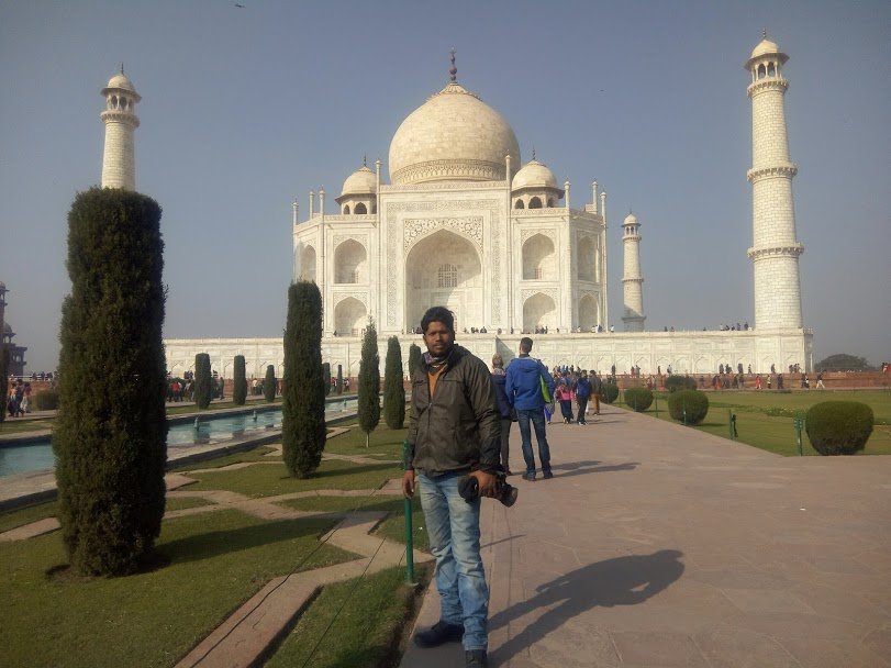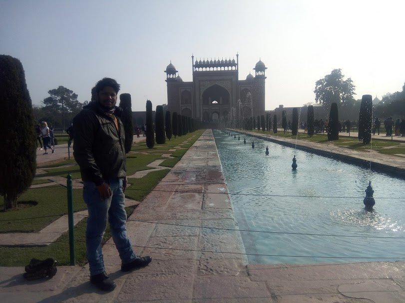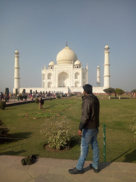 ताजमहल के पास पहुंच लंबी लाइन देखकर मेरे होश ही उड़ गए. सोचा था इतनी ठंड में कौन रजाई से निकलता है. लेकिन, यहां सैर करनेवालों की कोई कमी नहीं थी. दोपहर के बारह बज रहे थे. धूप चढ़ आई थी. जिससे थोड़ी राहत मिली. बाइक को पार्किंग में लगाते ही लोगों की भीड़ लग गई. फिर से तमाम तरह के सवाल. अब, मेरे पास समय तो कम था. जल्द ही ग्वालियर के लिए निकलना था. लोगों की संख्या देखकर लग रहा था कि आज ताजमहल दीदार का सपना पूरा नहीं होगा. तभी एक शख्स मेरे पास आया. वो काफी देर से मुझ पर नजर बनाए हुए था. आते ही उसने पूछा ताजमहल देखना है क्या. मुझे लगा अजीब सवाल पूछ रहा है यहां कोई कुतुबमीनार देखने आएगा क्या. फिर भी मैंने कहा देखना तो है. लेकिन, लाइन बहुत लंबी है और मुझे ग्वालियर के लिए निकलना भी है. उसने कहा कि 600 में आपको सीधे इंट्री करा दूंगा. दो घंटे में आप घुमकर निकल सकते हैं. इतनी बड़ी रकम तो मैं देनेवाला था ही नहीं. अभी तो सफर लंबा था. फिर जब मैंने उसे बताया कि भाई मुझे हैदराबाद तक बाइक से सफर करना है. पैसों की बचत जरूरी है. फिर वो 200 पर राजी हो गया. इसके बाद कुछ ही मिनटों में हमदोनों ताजमहल कैंपस के अंदर थे.