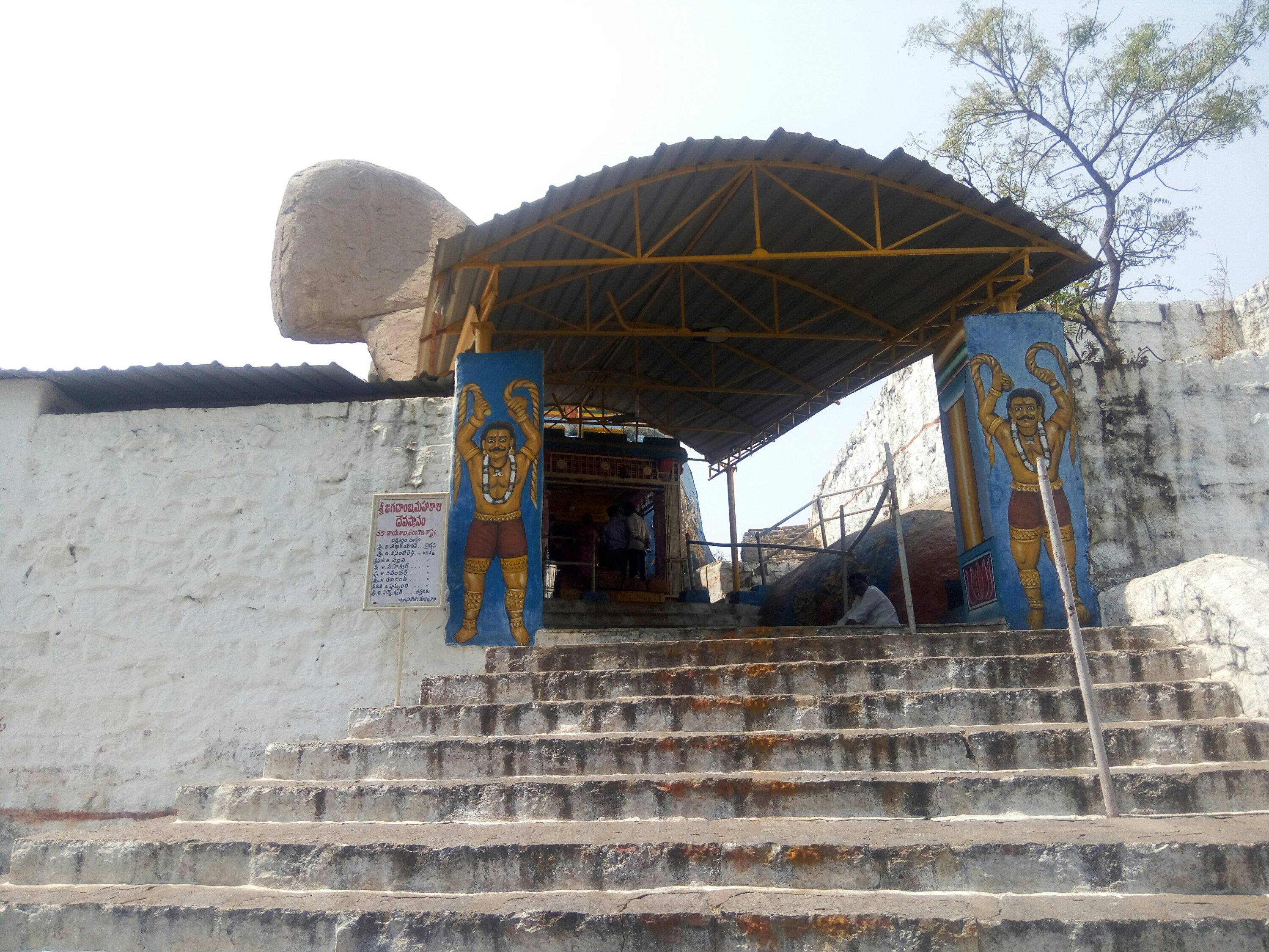 फोर्ट के चारों ओर घूमते-घूमते थकान होने लगी थी. पता चला कि यहां एक मंदिर भी है. इसे यल्लमादेवी का मंदिर बोला जाता है. अब्दुल हसन तानाशाह के जमाने में इसे बनाया गया था. मंदिर का डिजाइन गजब है. इसके ऊपर दो पत्थर टिके हुए हैं. दोनों का आकार अलग-अलग है. कई लोग इसे भगवान शिव की सवारी नंदी बोलते हैं. जूलाई के महीने में यहां भक्तों की भीड़ उमड़ पड़ती है . मेले में शामिल होने के लिए दूर-दूर से लोग आते हैं.