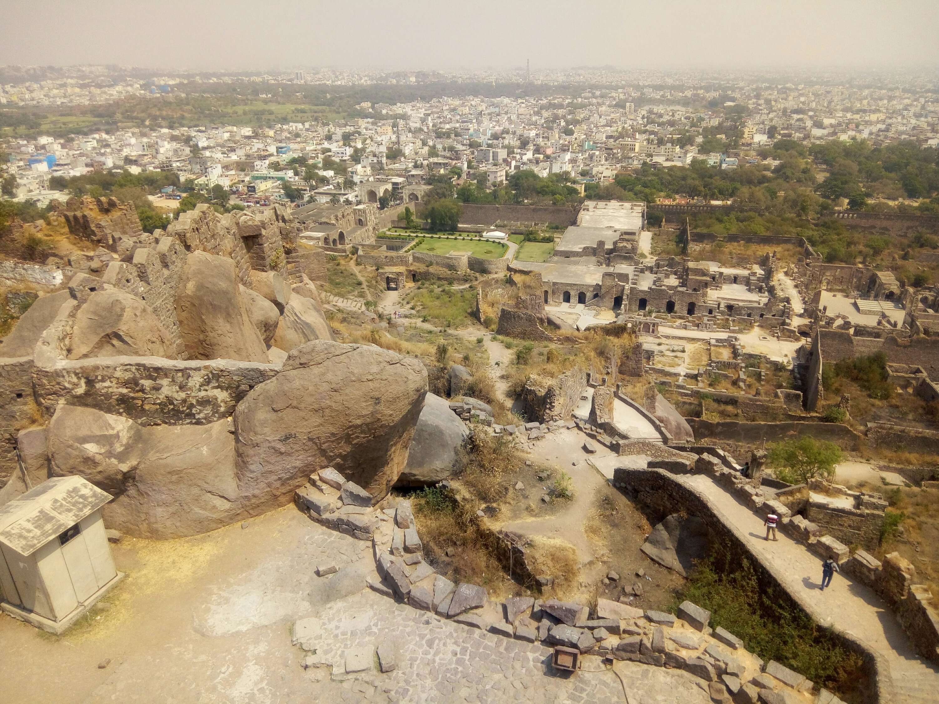 15 की टिकट लेकर साउथ के ऐतिहासिक फोर्ट में एंट्री हुई. काफी दिनों से सोचा हुआ सपना साकार हो रहा था. बचपन में गोलकुंडा का जो जिक्र पढ़ा था. उसे सामने देख रहा था. किले के नाम पर यहां काफी कम महल बचे हैं. कुछ बावरियां बची हुई है. इस किले में 9 गेट हैं. इन दरवाजों से होकर ही आप इसमें एंट्री कर सकते हैं. सभी की अलग-अलग खासियत है.कहा जाता है किसी जमाने में इसका एरिया 5 मिल तक फैला हुआ था. गोलकुंडा के सबसे उपरी हिस्से पर तीन मंजिल की इमारत दिखती है. इसे बारादरी कहा जाता था. यहां राजसभाएं हुआ करती थी. तीसरी मंजिल पर शाही आसन लगा हुआ है. बारादरी से हैदराबाद शहर काफी खुबसुरत दिखता है. आज भी किले की सबसे ऊंचाई वाली जगह यही है.